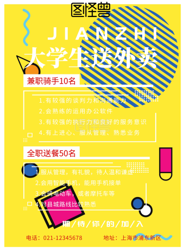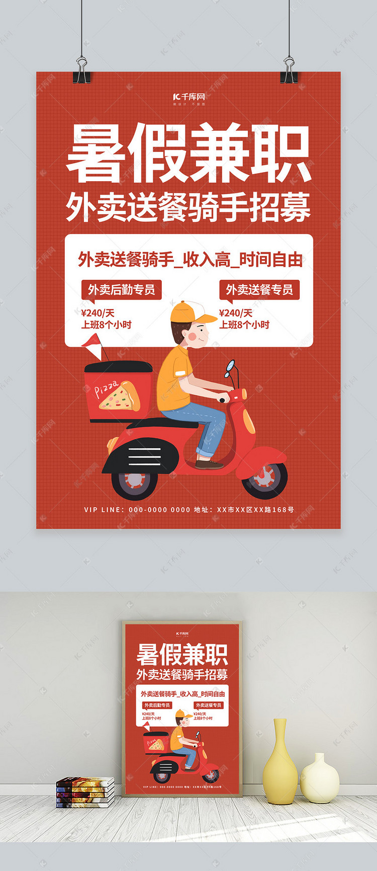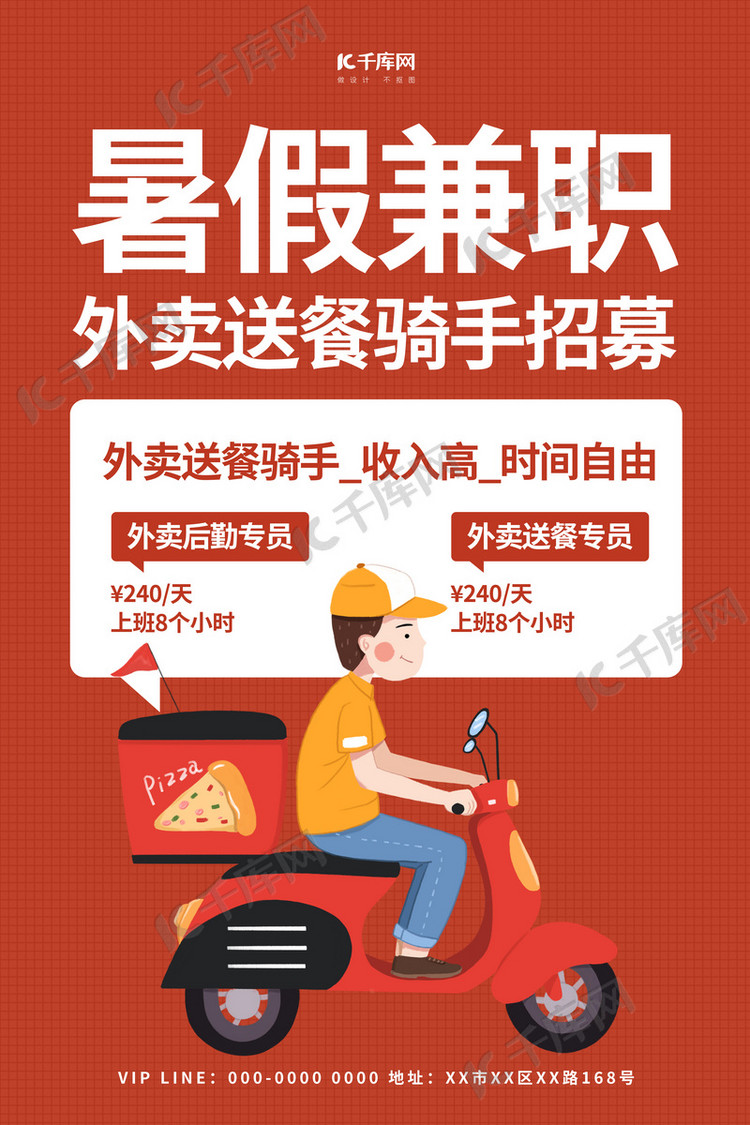 暑假兼职外卖小哥红色简约海报海报模板下载