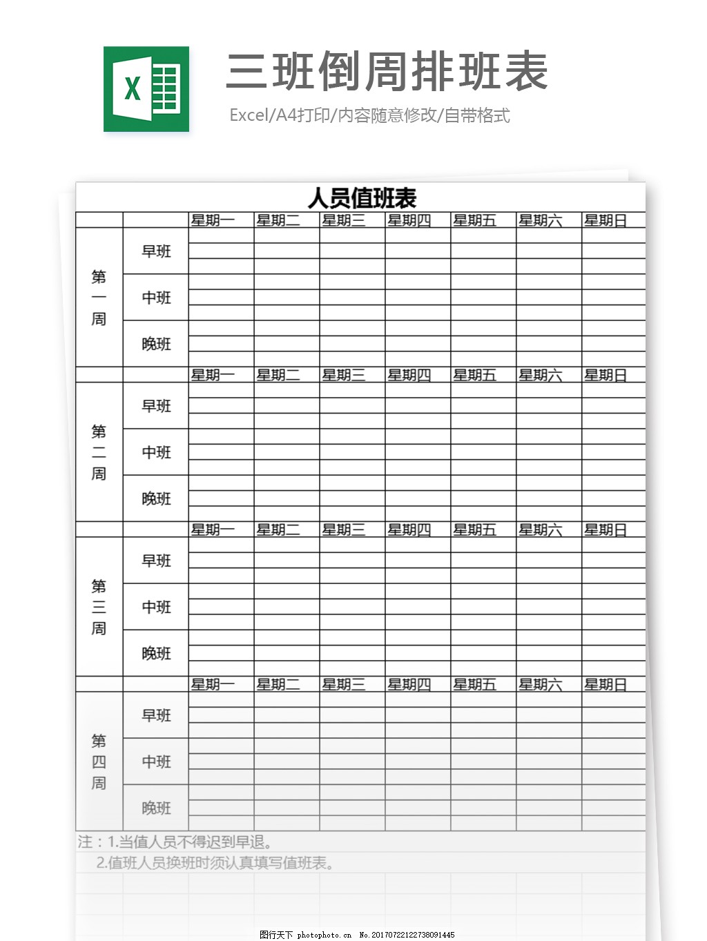 工厂早中晚三班倒员工排版表Excelexcel表格模板下载-我图网