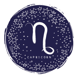 摩羯座手画黄道带标志插图在浅蓝色水彩
