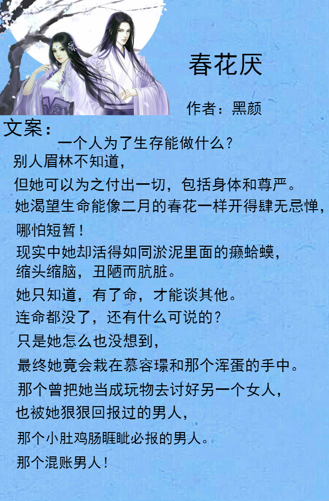 推荐古言小说《春花厌》,作者文笔不错,