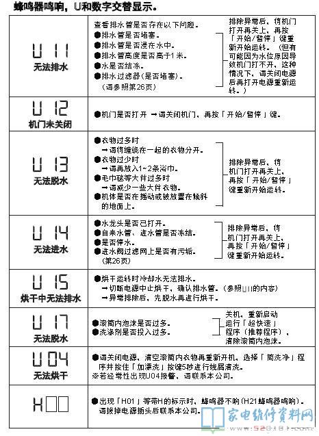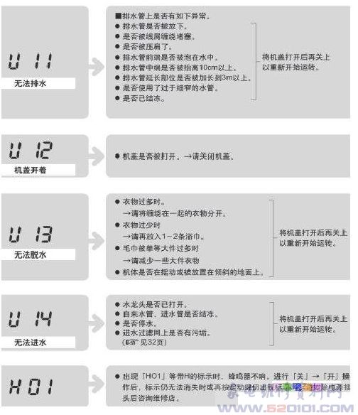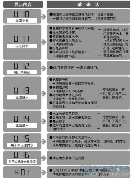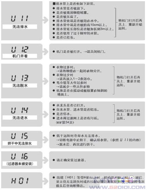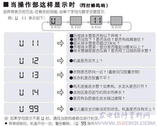 松下XQG100-EG12N滚筒洗衣机故障代码