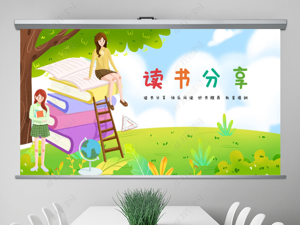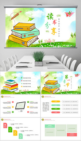 卡通教育读书分享会好书推荐快乐阅读动态PPT模板
