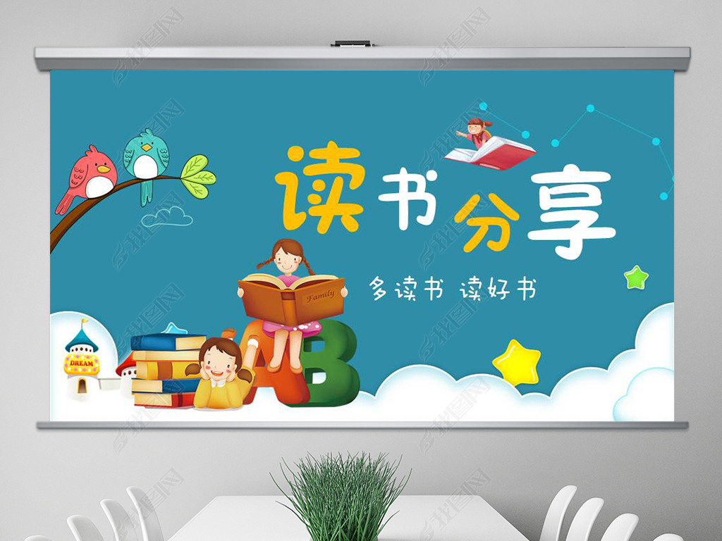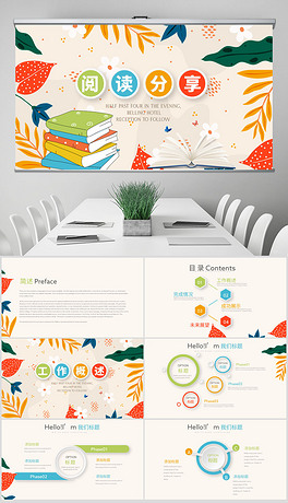 卡通幼儿园儿童小学生阅读分享会动态PPT模板封含PS