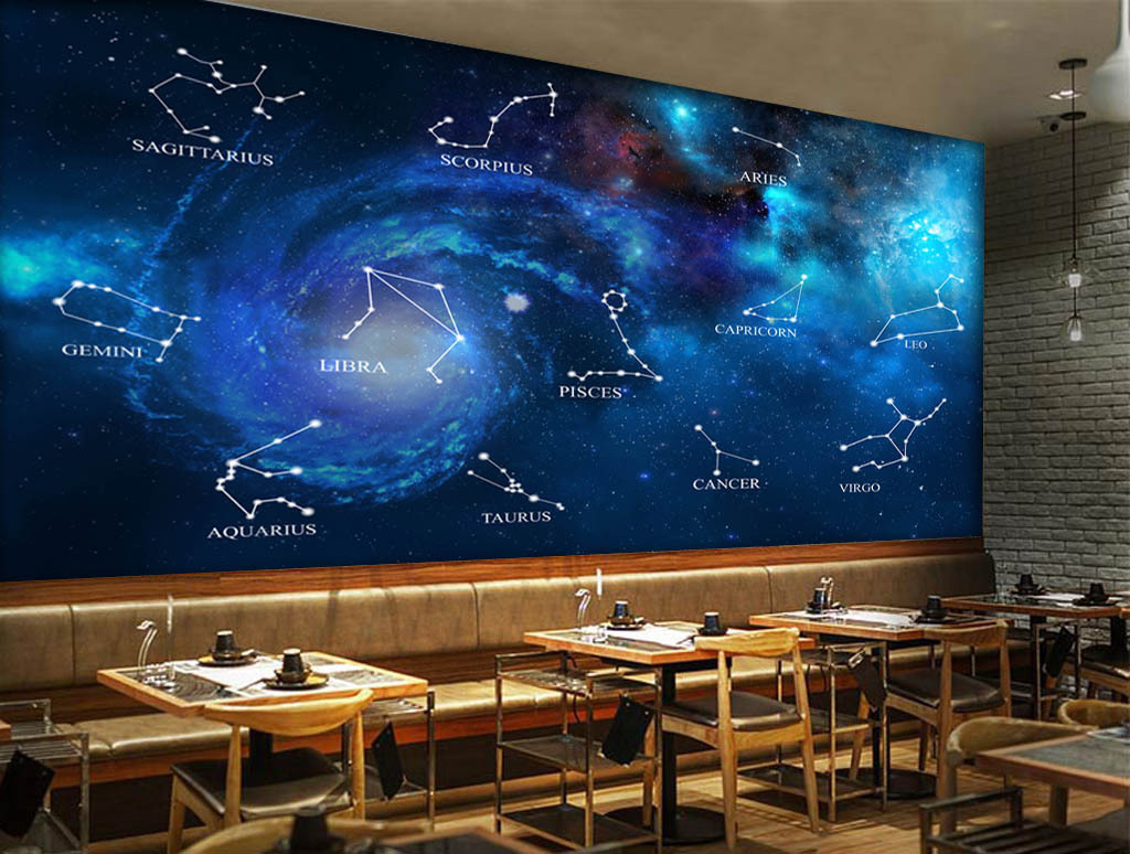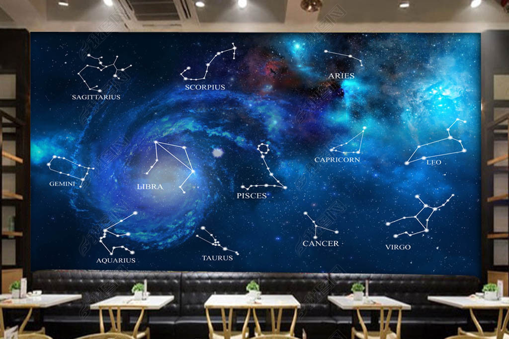蓝色星空十二星座酒吧KTV电视背景墙图片