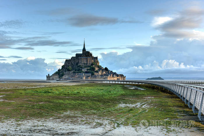 晨光在诺曼底-法国圣米歇尔山和它的反思