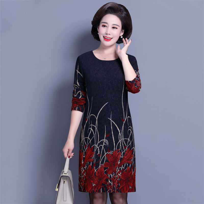 中老年金丝绒连衣裙40-50岁妈妈装修身