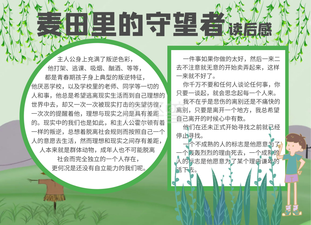 麦田里的守望者读后感手抄报