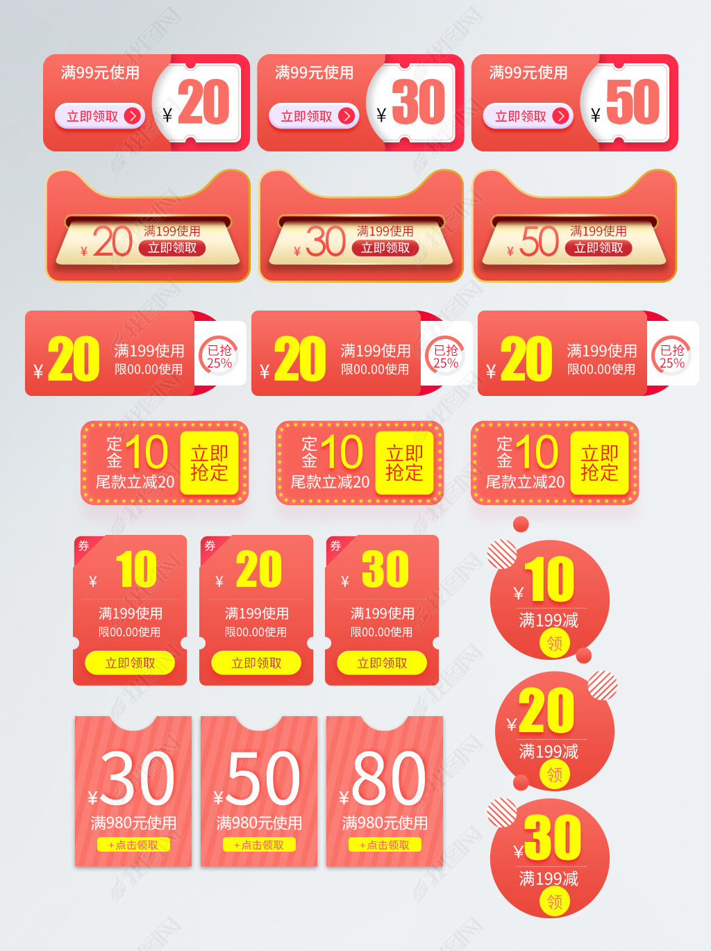 淘宝天猫创意珊瑚红优惠券打折券图片大全