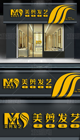 简约大气理发店门头美发店招牌矢量图免费下载_ai格式_编号35979876