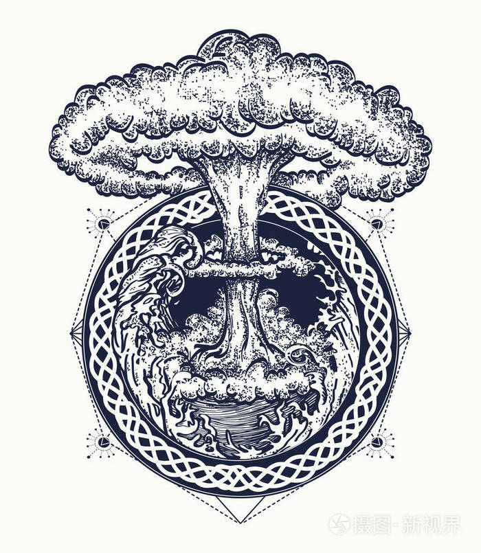 核爆纹身艺术。毁灭和死亡的象征