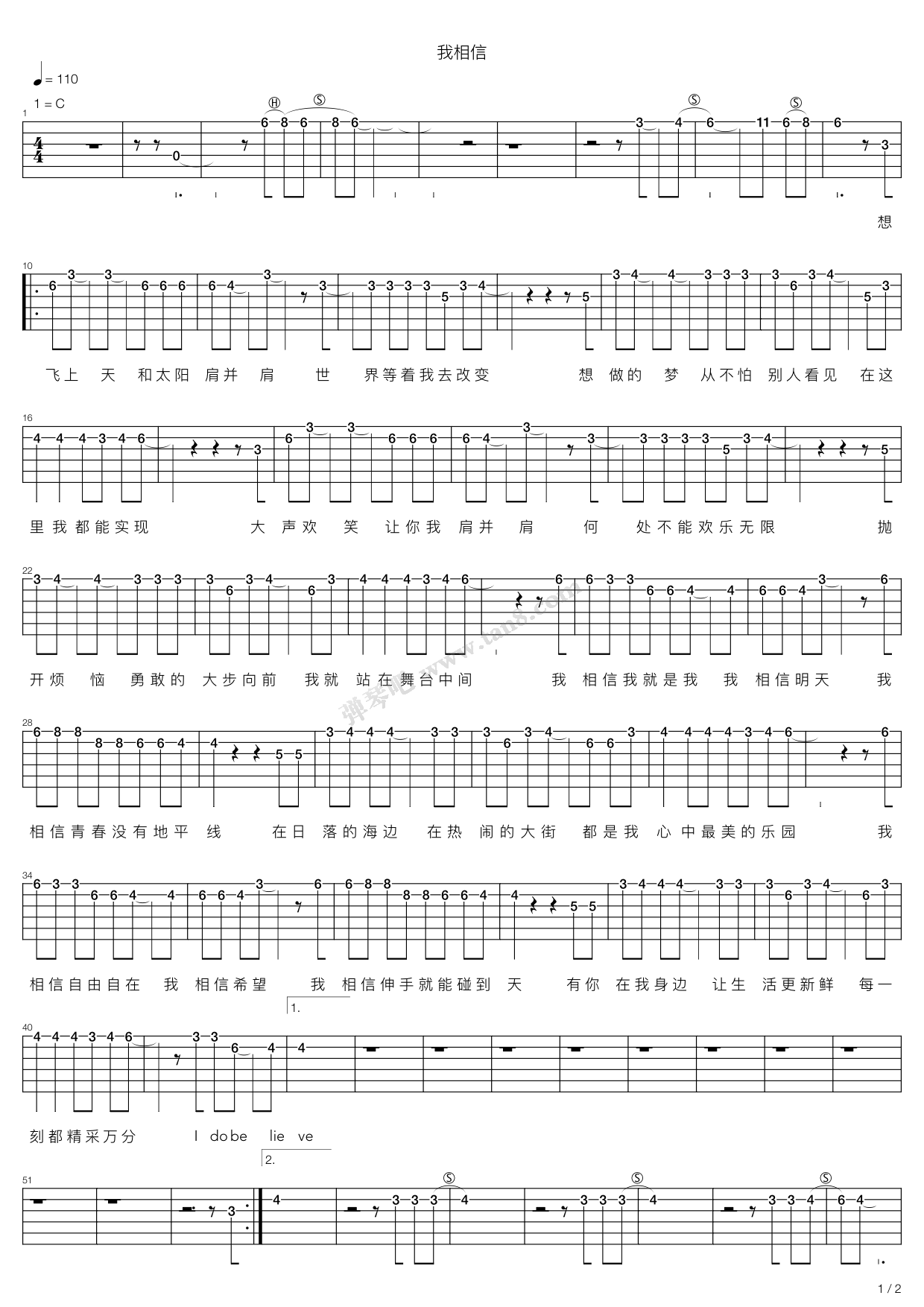 我相信_吉他谱_用户传谱| 搜谱——打造全国最大的歌谱搜索引擎