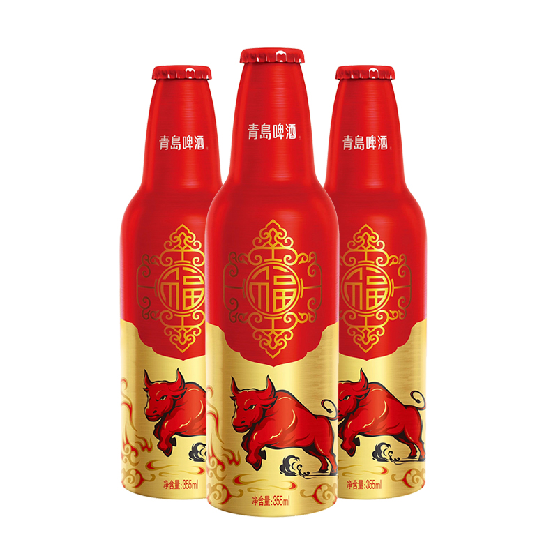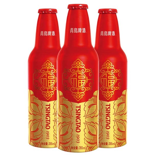 青岛啤酒鸿运当头红铝瓶福字啤酒355ml*12瓶整箱
