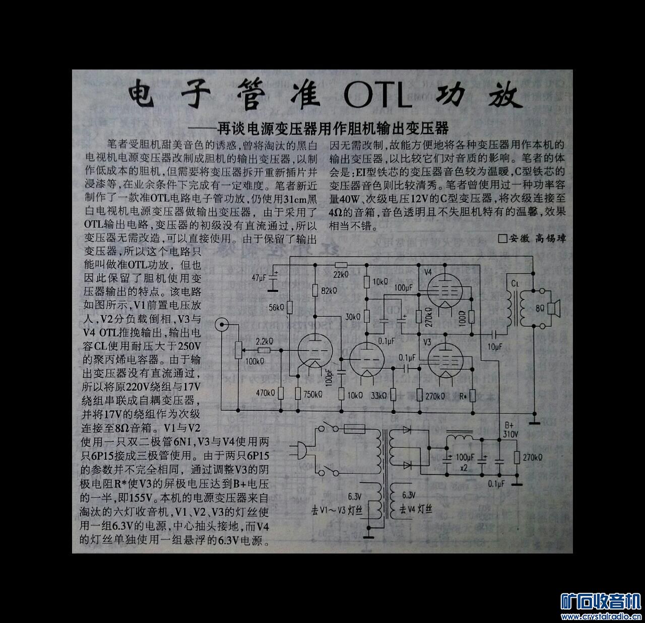 上个“电子管准OTL功放”电路给有兴趣的朋友参考! - 〓电子管技术区〓 - 矿石收音机论坛