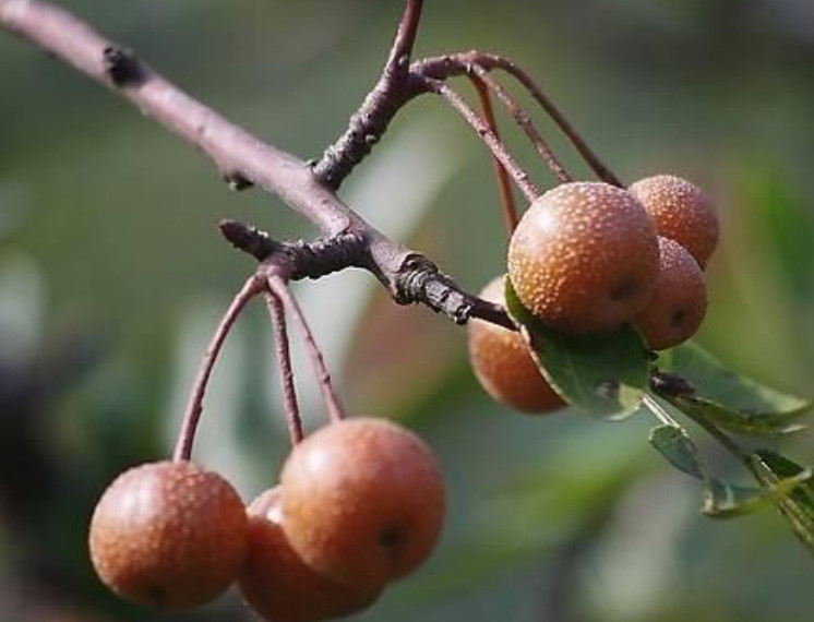 个头小巧的棠梨子皮糙味酸,农村人常摘它