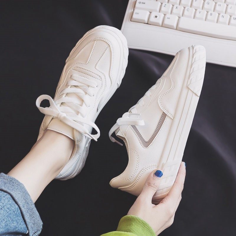 女生白色平底鞋透气