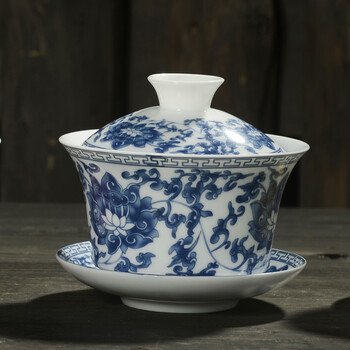 肖字和德 茶具零配 青花瓷 高白薄胎盖碗 三