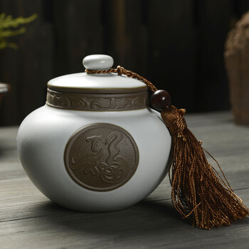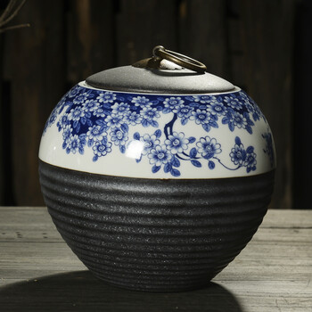 肖字和德 青花瓷特大号茶叶罐 铁锈釉陶瓷
