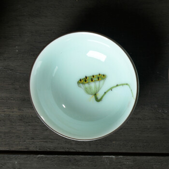 肖字和德 功夫茶具配件 龙泉青瓷手绘茶杯