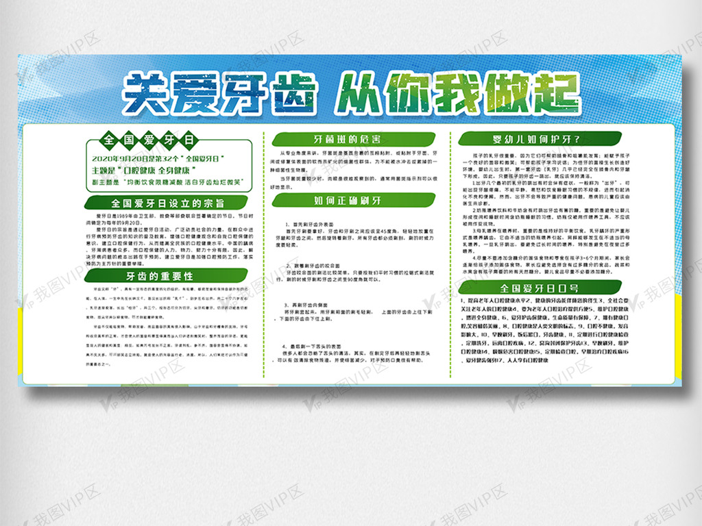 全国爱牙日内容知识双面展板素材