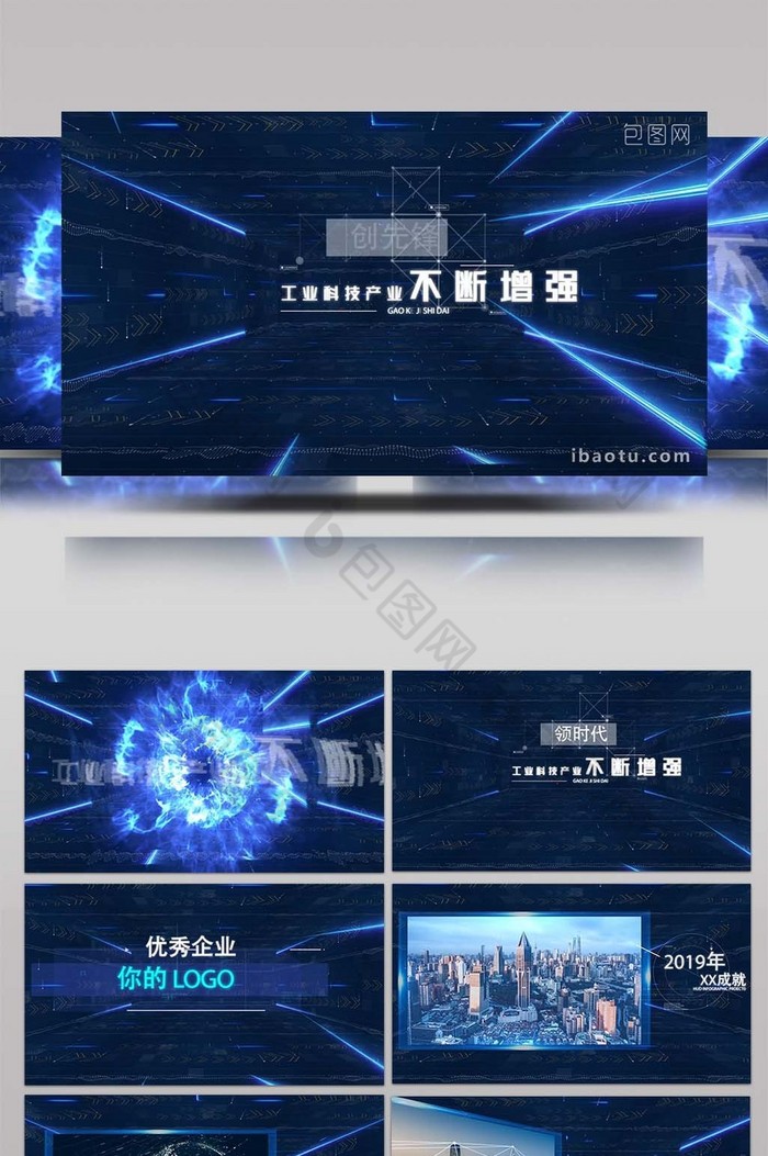 蓝色大气粒子科技传递企业历史回顾AE模板