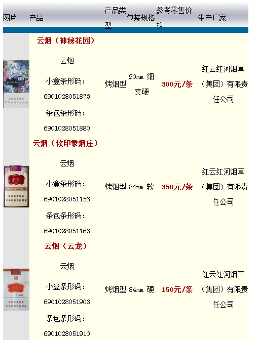 新云烟香烟价格查询 2016最新云烟价格表