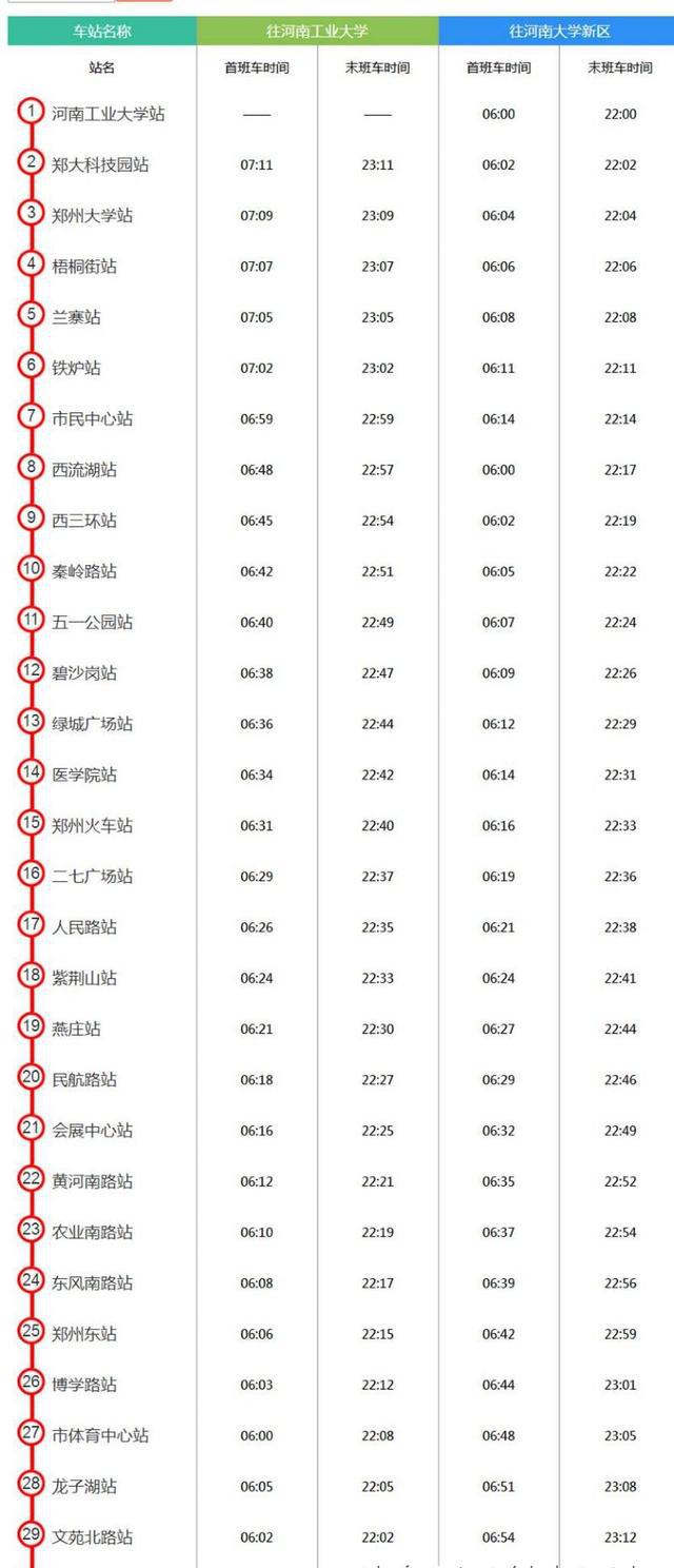速看!最新郑州地铁时刻表来啦!另外,地铁2号线二期······