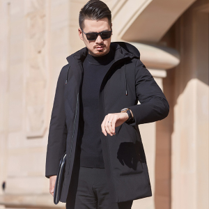 劲霸男装秋冬新款羽绒服中长版时尚撞色薄羽绒服外套男|BREJ4385