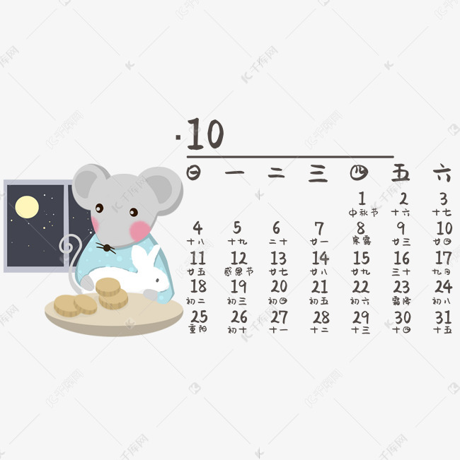 粉色十月日历免费下载_卡通手绘_1024像素_编号9429702_png格式