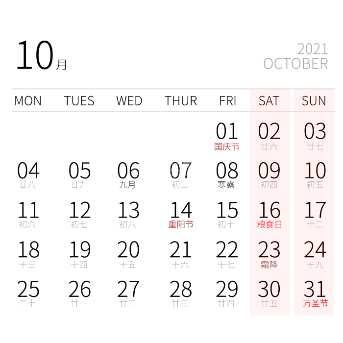 图怪兽原创元素2021日历十月10月黑色排版日历元素