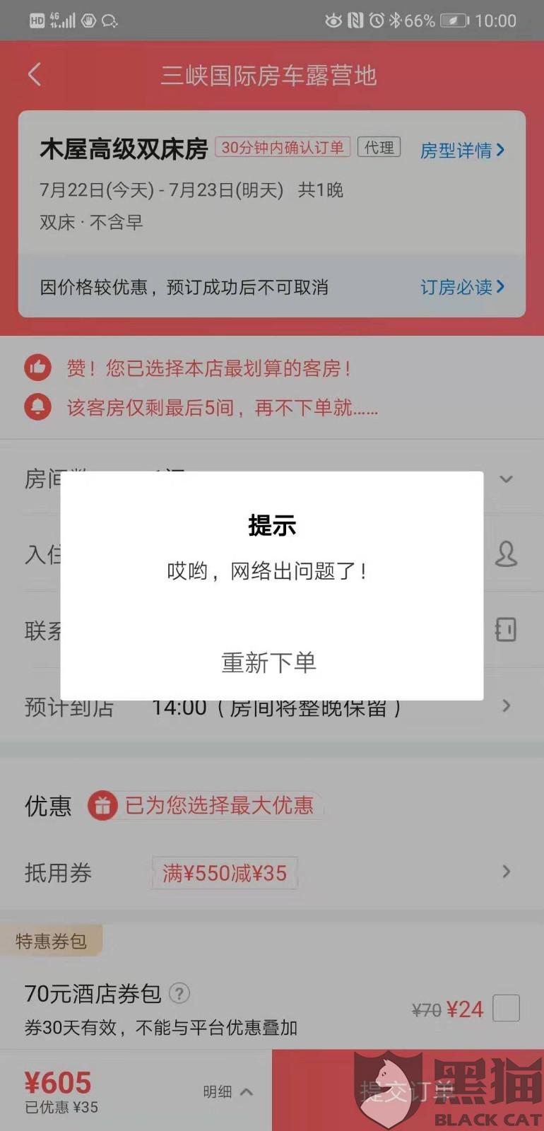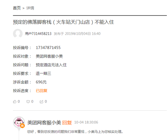 黑猫投诉:美团网预定成功的酒店无法入住-