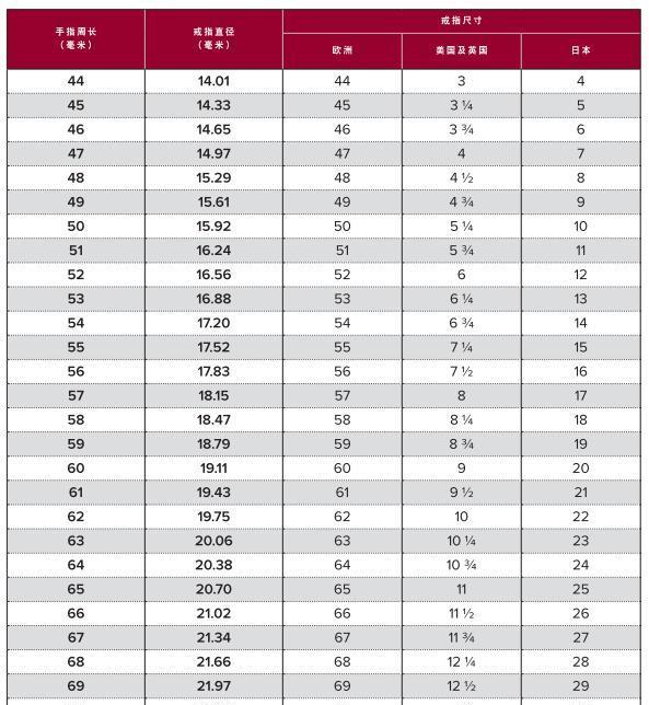 卡地亚戒指尺寸对照表 如何买到合适的