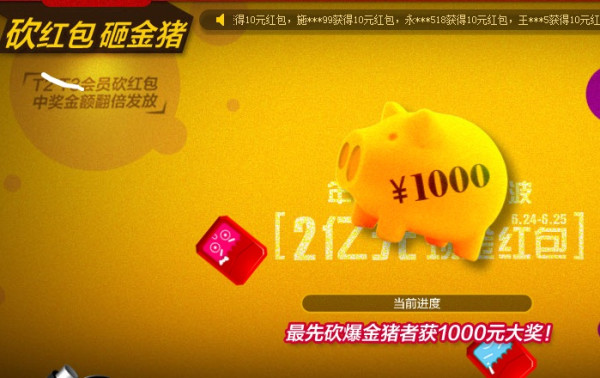 天猫砍红包 砸金猪 免费抢5-1000元现金