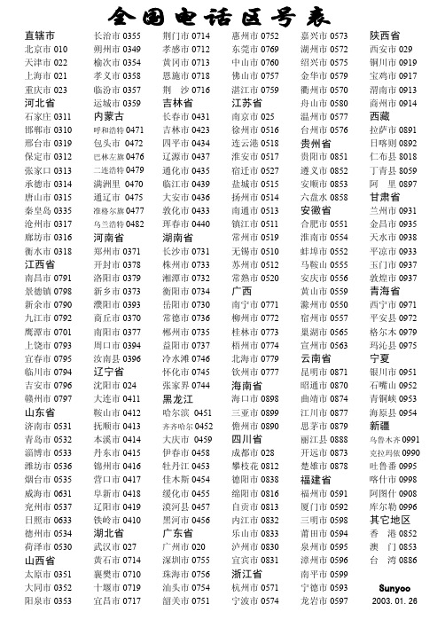 [城市电话区号大全表]全国城市区号表