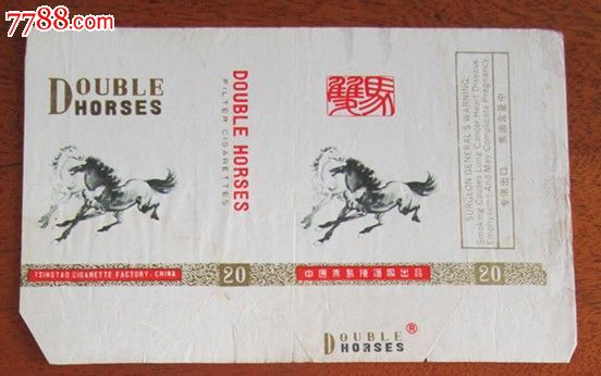 山东青岛卷烟厂---双马(出口)01,烟标\/烟盒,