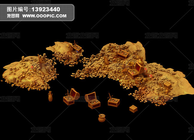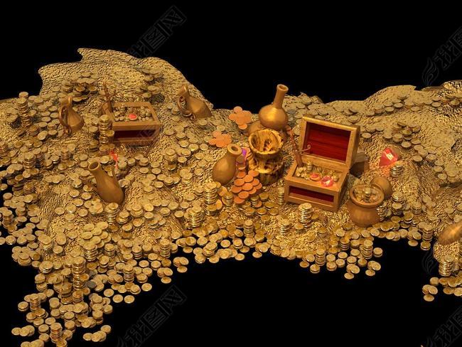 超写实逼真的黄金堆宝石宝藏堆金银珠宝