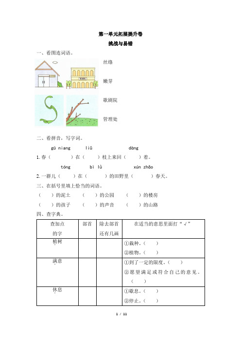 升卷 挑战与易错 一、看图连词语。 丝绦 嫩芽