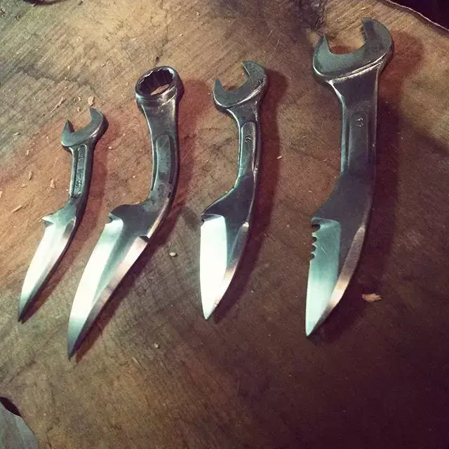 修车淘汰了的扳手,用来做刀却是好钢材!