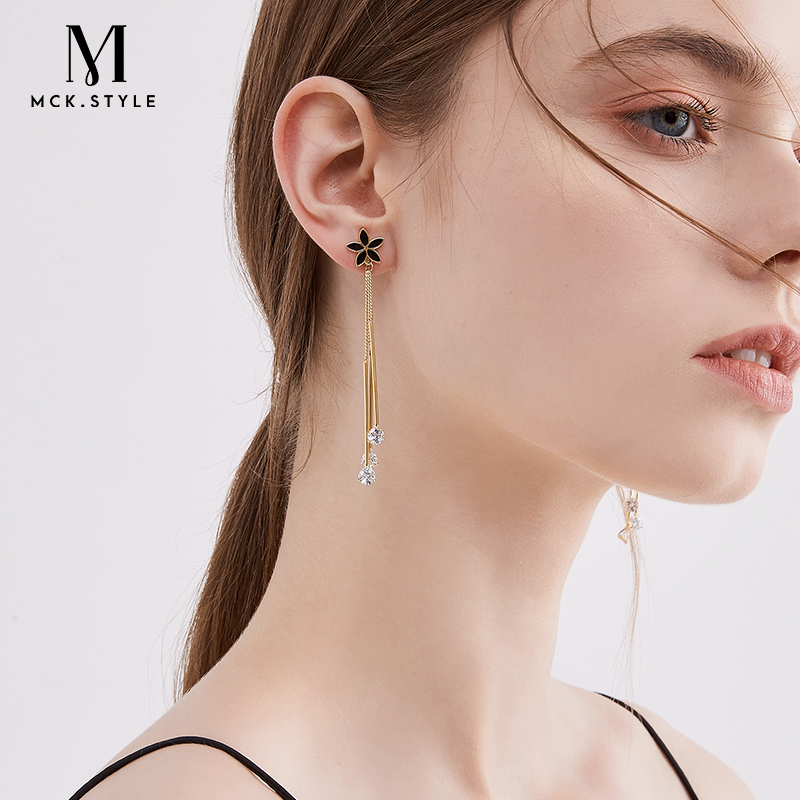 SUSU家韩国不对称黑色耳环无耳洞女耳夹