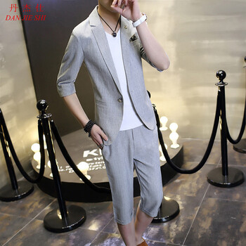 丹杰仕 夏季时尚潮男中袖西服套装七分袖