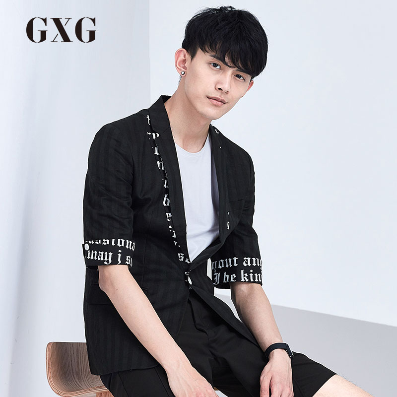 GXG男装 春夏时尚黑色潮流单西\/中袖西装