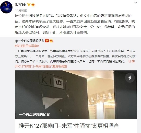 一代名嘴朱军深陷性骚扰案,首次回应我