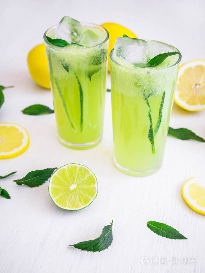 石灰和薄荷,夏季提神的饮料西瓜柠檬水