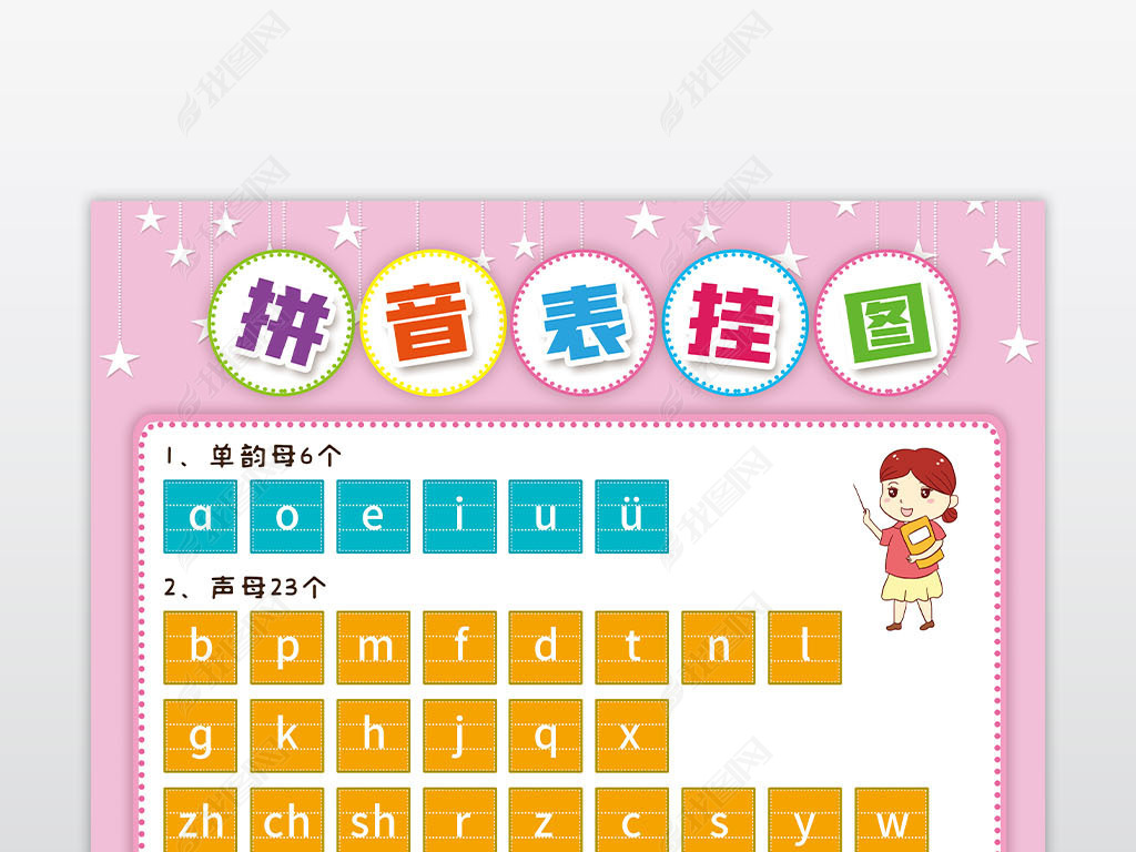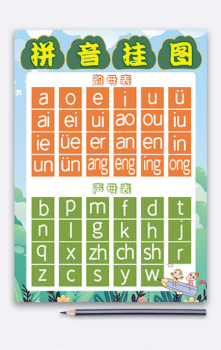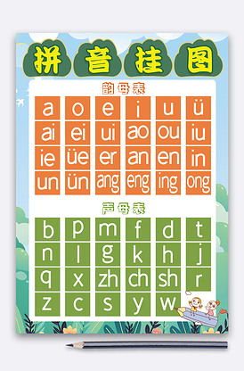 拼音挂图儿童早教启蒙认识英语字母卡通