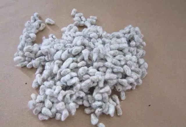 已经被从棉铃在黑色面料背景上的轧花机轧花过程的棉花种子