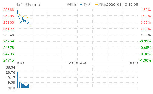恒指涨0.45%报25152点 中国石油H股涨超3%