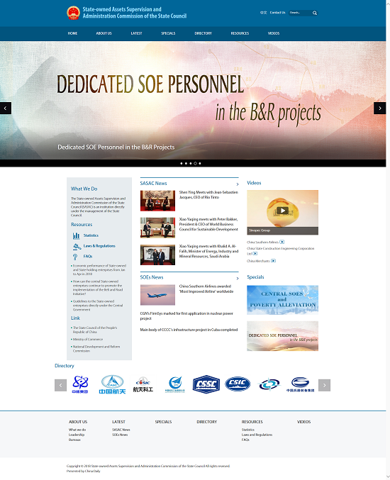国务院国资委网站英文版改版上线 新页面