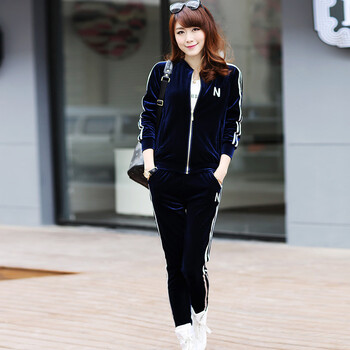 薇之衣2014春装新款金丝绒运动套装女