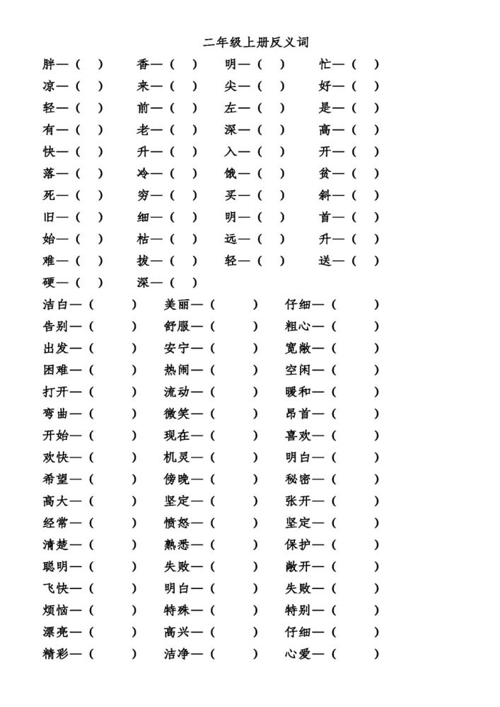 二年级语文近义词反义词专项练习,附答案707x1000 - 62KB - JPEG
