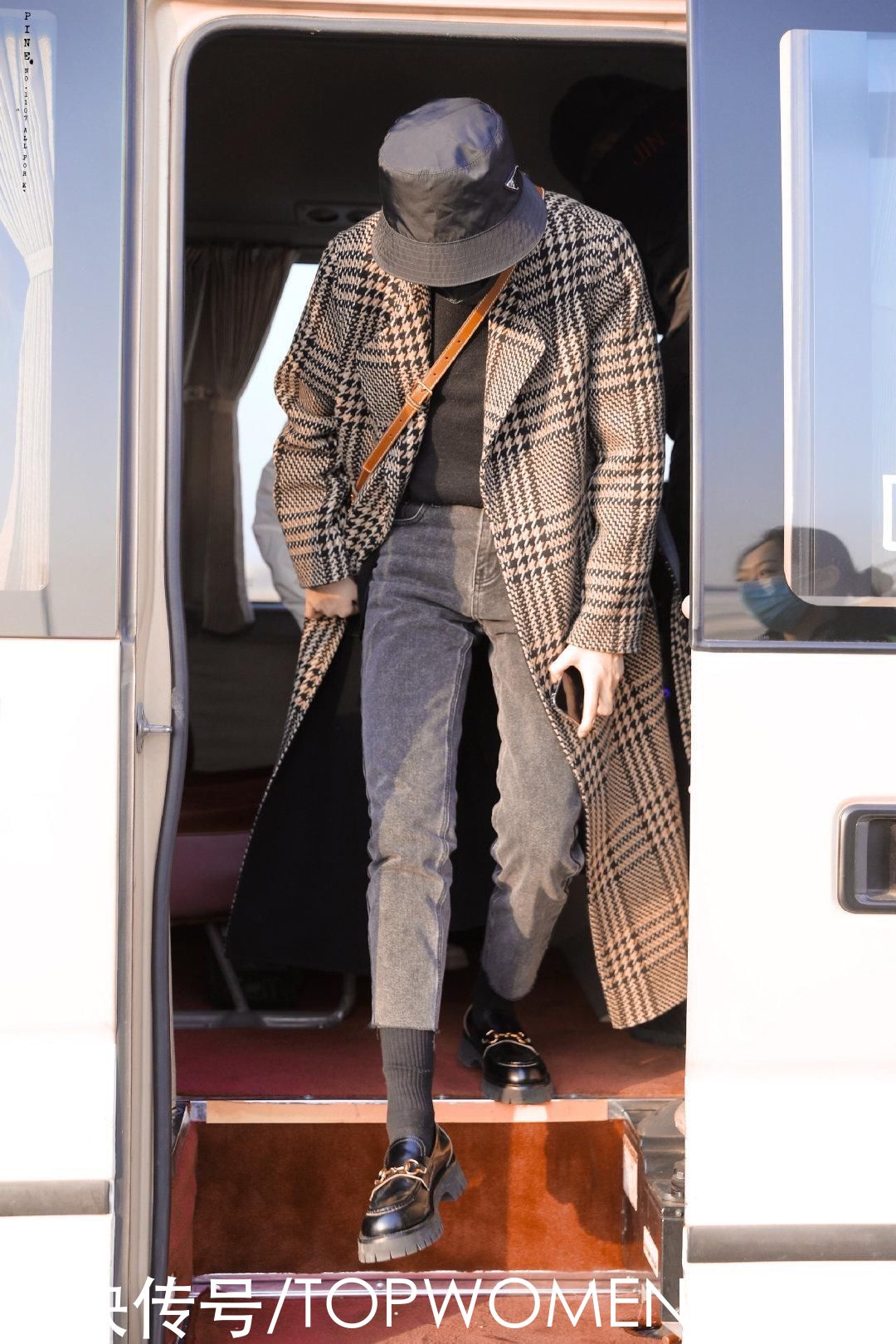 陈伟霆真敢穿,女款千鸟格大衣裹到脚踝,