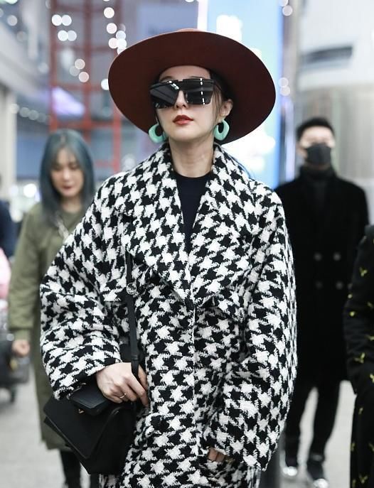 范冰冰成功复出?千鸟格大衣配礼帽名媛
